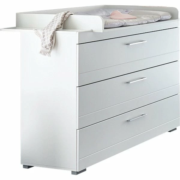 Die Arthur Berndt Liene Wickelkommode wird mit abnehmbaren Wickelaufsatz geliefert. Die drei großen Schubkästen sind mit Self-Soft-Close ausgestattet und einem Trennsteg.