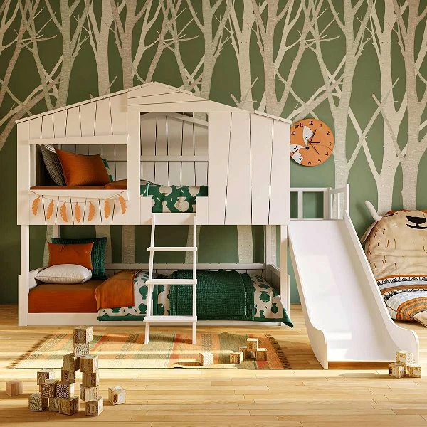 Dazu lässt sich das Artkid Haus-Etagenbett mit eigenen Ideen toll dekorieren, mit Lichterketten, Kissen, Vorhängen, Kuscheltieren… Ihre Kinder werden begeistert sein.