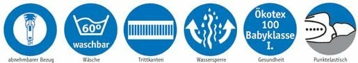 - mit atmungsaktiver Wassersperre – waschbare, wasserabweisende Auflage