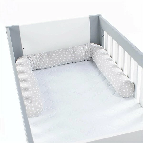 babybay Nestchenschlange Piqué für Kinderbetten perlgrau, mit Punkten weiß