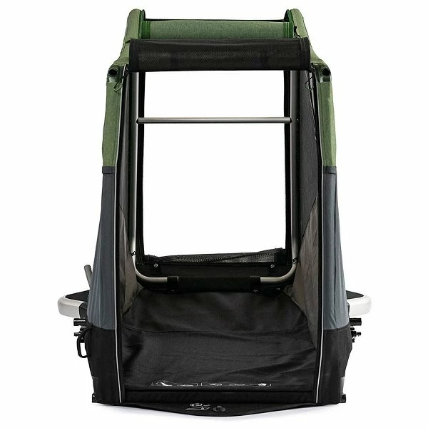Jetzt kann man auch seinen mittelgroßen Hund mitnehmen! Der Croozer Dog Bruuno wurde speziell für Hunde bis 45 kg und durch seinen niedrigen Einstieg von nur 14 cm, für Hunde mit Handicap entwickelt. Er besitzt vorne einen Reißverschluss im Verdeck so dass der Hund seine Nase raus halten kann und Herrchen oder Frauchen immer im Blick hat.