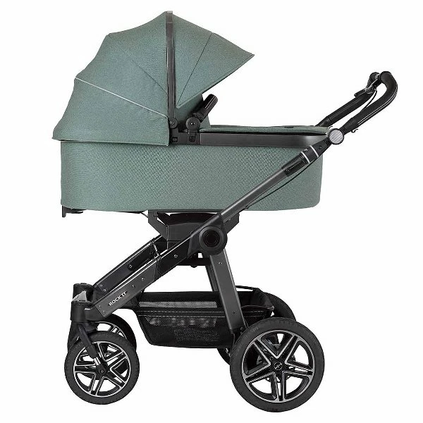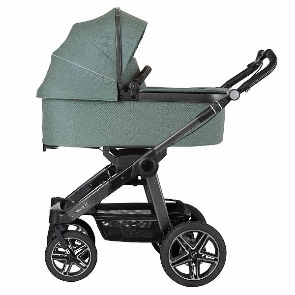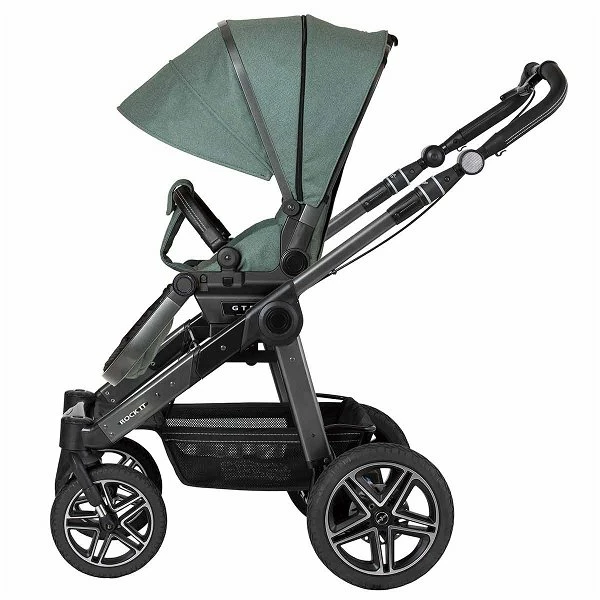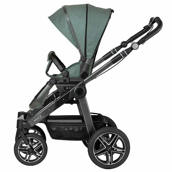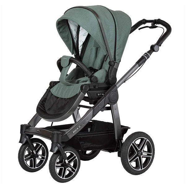 Der Hartan Rock it GTR Kinderwagen ist mit allem ausgestattet was Sie für den ersten Ausflug mit Ihrem Baby brauchen. Von Geburt an kann der Hartan Kinderwagen mit der geräumigen Falttasche Premium genutzt werden. Diese ist mit einer Softline-Klima Matratze ausgestattet und hat eine doppelt ausklappbare Sonnenblende sowie einen Windschutz für Schutz und Komfort in den ersten Monaten. Zusätzlich befindet sich der Adapter 9912 für alle gängigen Babyschalen im Lieferumfang, mit diesem können Sie Ihren Hartan Kinderwagen einfach in ein Travelsystem verwandeln. Für ein optimales Fahrgefühl sorgen die gefederten, extragroßen Fronträder mit Trigon-Felge und das auf jedem Terrain, außerdem sind die Luftkammerräder superleicht und kugelgelagert. Durch den höhenverstellbaren Schiebegriff passt sich der Kinderwagen individuell an Ihre Körpergröße an. Die Griffbezüge in Lederoptik sind wertvoll veredelt und bieten eine gute Haptik.