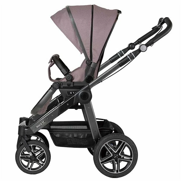 Der Hartan Rock it GTR Kinderwagen ist mit allem ausgestattet was Sie für den ersten Ausflug mit Ihrem Baby brauchen. Von Geburt an kann der Hartan Kinderwagen mit der geräumigen Falttasche Premium genutzt werden. Diese ist mit einer Softline-Klima Matratze ausgestattet und hat eine doppelt ausklappbare Sonnenblende sowie einen Windschutz für Schutz und Komfort in den ersten Monaten. Zusätzlich befindet sich der Adapter 9912 für alle gängigen Babyschalen im Lieferumfang, mit diesem können Sie Ihren Hartan Kinderwagen einfach in ein Travelsystem verwandeln. Für ein optimales Fahrgefühl sorgen die gefederten, extragroßen Fronträder mit Trigon-Felge und das auf jedem Terrain, außerdem sind die Luftkammerräder superleicht und kugelgelagert. Durch den höhenverstellbaren Schiebegriff passt sich der Kinderwagen individuell an Ihre Körpergröße an. Die Griffbezüge in Lederoptik sind wertvoll veredelt und bieten eine gute Haptik.