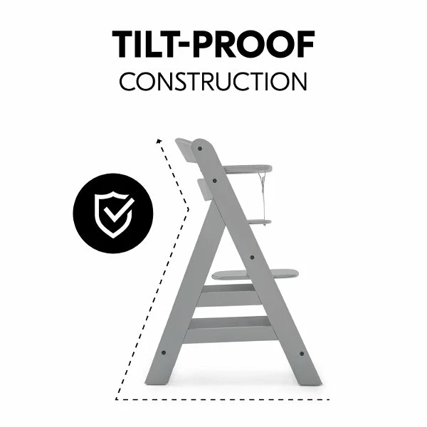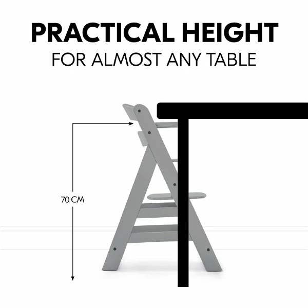 Durch die verstellbare Sitz- und Fußplatte passt sich der Treppenhochstuhl an die Körpergröße deines Kindes an und ermöglicht eine bequeme Sitzposition in jedem Alter. Der Hochstuhl passt auch mit Bügel unter fast jeden Tisch und ist mit einer Maximalbelastung bis 90 kg ein zuverlässiger Begleiter – ein ganzes Leben lang.