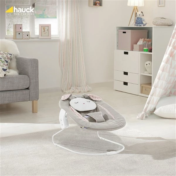 Der Wechsel vom Hochstuhlaufsatz zur Babywippe ist besonders einfach: mit einem Handgriff löst du den Aufsatz vom Hochstuhl und steckst ihn schnell und sicher auf das mitgelieferte Wippgestell und nutzt den Alpha Bouncer als Wippe. Durch die Bewegungen des Babys schwingt der Bouncer sanft auf und ab und wirkt beruhigend.