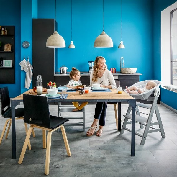 Der 2 in 1 Alpha Bouncer bietet zwei Funktionen: er kann als Wippe auf dem mitgelieferten Wippengestell genutzt werden oder als Neugeborenenaufsatz auf den Alpha+ Holzhochstuhl aufgesteckt werden. So ist dein Baby ab Geburt am Esstisch dabei und kann am Familiengeschehen teilnehmen.