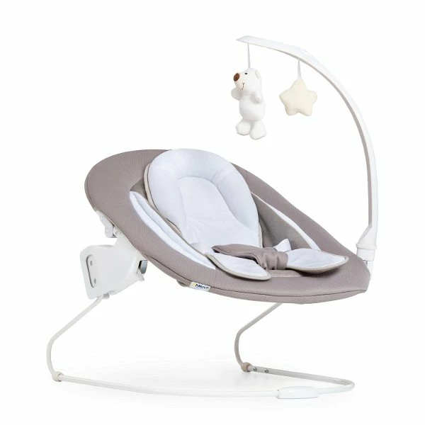 Der ergonomisch geformte und weich gepolsterte Alpha Bouncer Deluxe lässt sich mit nur wenigen Handgriffen direkt auf dem hauck Holzhochstuhl montieren. Der im Lieferumfang enthaltene Sitzverkleinerer stützt das Köpfchen und die zusätzliche seitliche Polsterung sorgt für höchsten Komfort. Die große Liegefläche lässt sich mit nur einer Hand in mehreren Stufen flach stellen. So finden Eltern immer die richtige Position zum Füttern oder Spielen. Durch die erhöhte Position auf dem Kinderstuhl wird beim Füttern der Rücken von Mama und Papa geschont. Die süßen Anhänger am Mobile regen den kleinen Schatz zum Greifen und Drehen an und fördern die motorischen Fähigkeiten. Der Spielebogen kann jederzeit zur Seite gedreht oder abgenommen werden. Der 3-Punkt-Gurt sorgt für die Sicherheit des Kleinen.