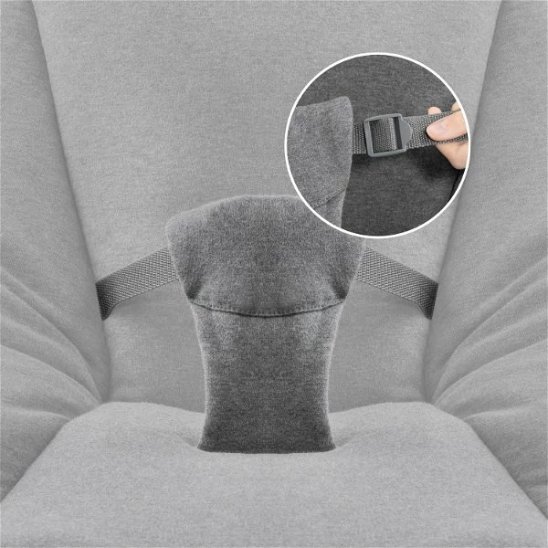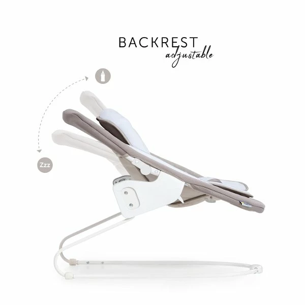 Die Rückenlehne lässt sich per Einhand-Bedienung in Liegeposition verstellen. Ein Mobile sowie die Möglichkeit, den Aufsatz auch als Babywippe zu nutzen, sorgen für entspannte Abwechslung.