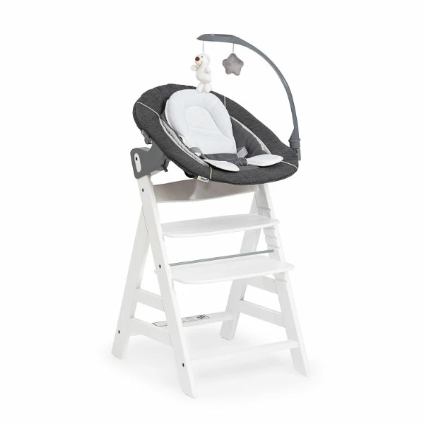 Das ideale Newborn-Set. Mit dem kuscheligen Alpha Bouncer Deluxe können die mitwachsenden hauck Holzhochstühle Alpha+ bzw. Beta+ bereits ab der Geburt genutzt werden. Neugeborene fühlen sich hier besonders wohl, denn sie können auf Augenhöhe am Familiengeschehen teilhaben.