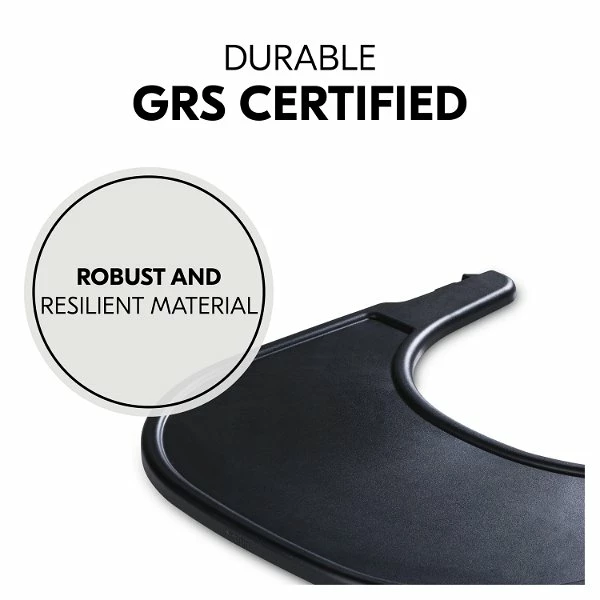 Das Essbrett wird aus recyceltem Material gefertigt, das nach dem Global Recycled Standard, kurz GRS, zertifiziert ist. Das steht für klare soziale, ökologische und chemische Produktionsvorschriften. Das Tablett kannst du ganz einfach über einen Klick an den Hochstuhl montieren. Dieser eigene Tisch gibt deinem Kind von 6 bis 36 Monaten mehr individuellen Freiraum. Die glatte Oberfläche kannst du schnell mit einem Tuch und herkömmlichen Reinigungsmitteln sauber wischen.