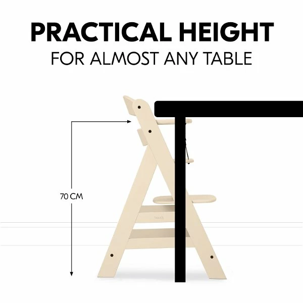 Durch die verstellbare Sitz- und Fußplatte passt sich der Treppenhochstuhl an die Körpergröße deines Kindes an und ermöglicht eine bequeme Sitzposition in jedem Alter. Der Hochstuhl passt auch mit Bügel unter fast jeden Tisch und ist mit einer Maximalbelastung bis 90 kg ein zuverlässiger Begleiter – ein ganzes Leben lang.