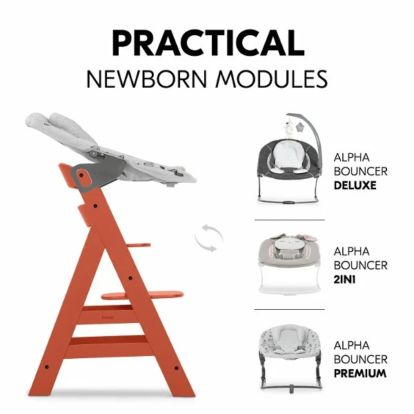 Kombiniert mit den Alpha Bouncer Babyaufsätzen, die auch als Babywippe nutzbar sind, ist dein Baby von Beginn an auf Augenhöhe mit der Familie. Ergänzen kannst du den Alpha+ mit verschiedenen Essbrettern, Hochstuhlauflagen, Sitzverkleinerern, Aufbewahrungsboxen und dem individualisierbaren Spielbrett.