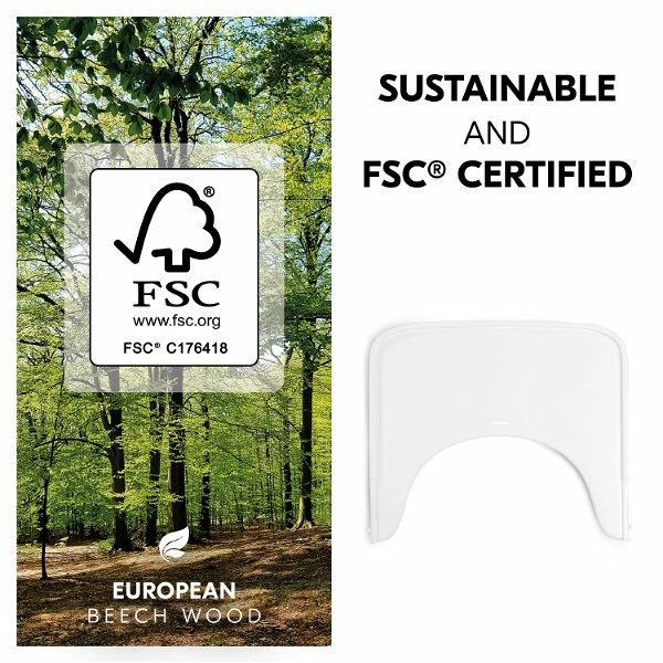Das Essbrett wird aus recyceltem Material gefertigt, das nach dem Global Recycled Standard (GRS) zertifiziert ist. Das steht für klare soziale, ökologische und chemische Produktionsvorschriften. Das Tablett kannst du ganz einfach über einen Klick an den Hochstuhl montieren. Dieser eigene Tisch gibt deinem Kind von 6 bis 36 Monaten mehr individuellen Freiraum. Die glatte Oberfläche kannst du schnell mit einem Tuch und herkömmlichen Reinigungsmitteln sauber wischen.