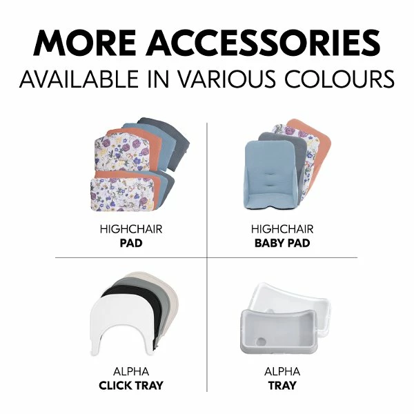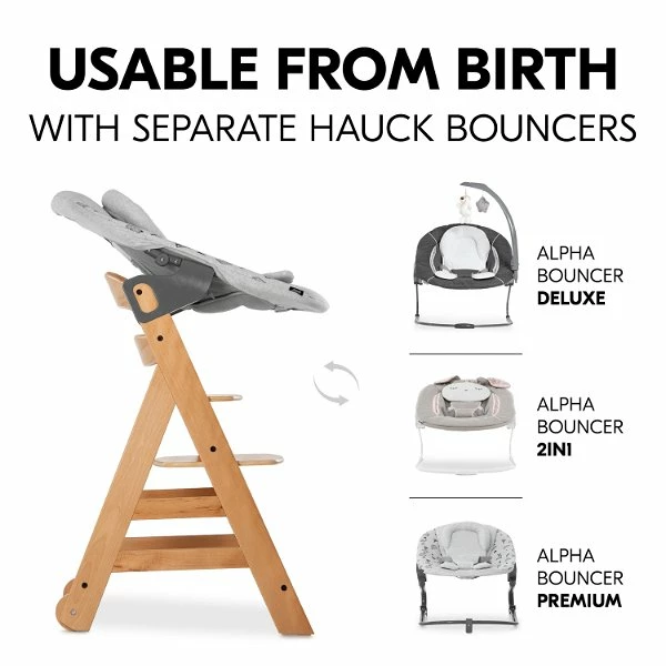 Kombiniert mit den separat erhältlichen Alpha Bouncer Babyaufsätzen, die auch als Babywippe nutzbar sind, ist dein Baby von Beginn an auf Augenhöhe mit der Familie.