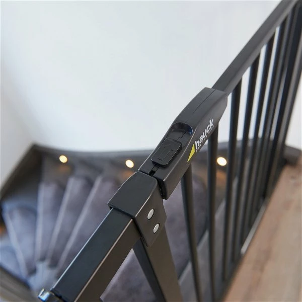 Das Close N Stop Schutzgitter hat einen manuellen Schließmechanismus und rastet zuverlässig im kindersicheren Verschluss ein. Dank Zweifach-Sicherung können nur Erwachsene das Schutzgitter bedienen. Das Close N Stop lässt sich mit nur einer Hand in beide Richtungen öffnen. So ist die andere Hand immer für den kleinen Schatz frei.