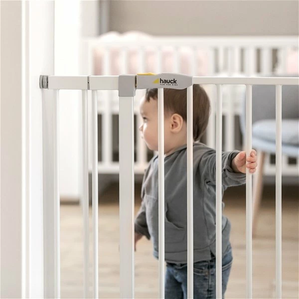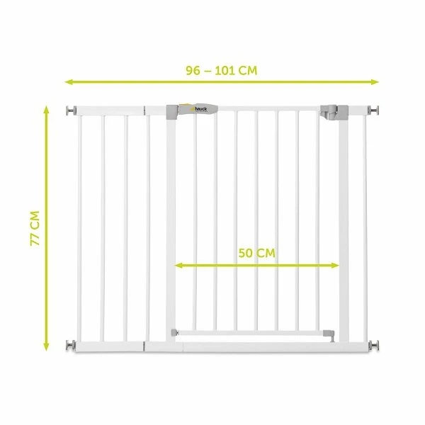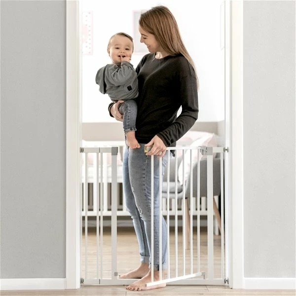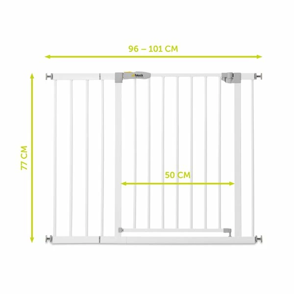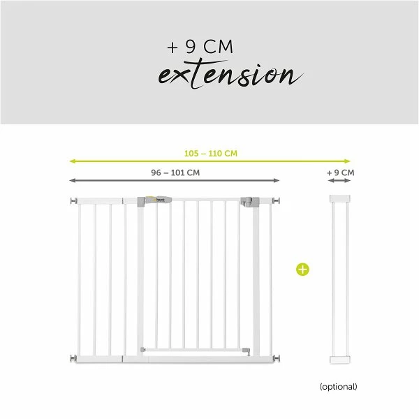 Das Metallschutzgitter Stop N Safe 2 wird bereits mit einer 21 cm Verlängerung geliefert und ist dadurch ideal zur Absicherung von Treppen bzw. Durchgängen von 96 – 101 cm.