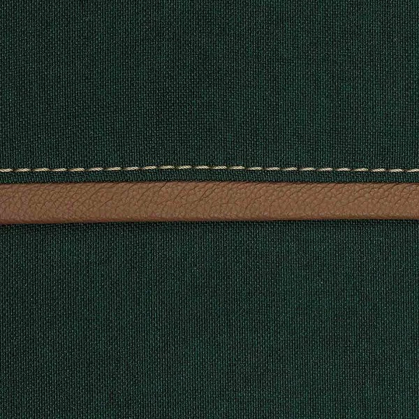 Außenstoff 647: Leinen dunkelgrün mit Lederwulst hellbraun |