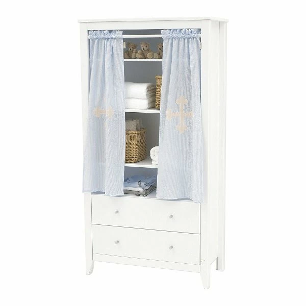Nutzen Sie den Hoppekids Schrank Hans als Regal mit 2 Schubkästen oder statten Sie es mit passenden Vorhängen oder einem Türenset aus.