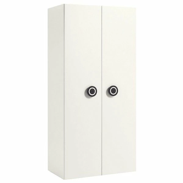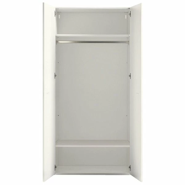 Der Kleiderschrank ist mit 2 Türen ausgestattet. Innen befinden sich 2 Einlegeböden und 1 Kleiderstange.