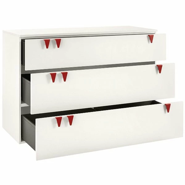 Die hülsta now! minimo Kommode breit ist mit 3 Schubladen ausgestattet und bietet somit viel Platz für Windeln und Pflegemittel.