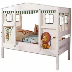 Ticaa Hausbett MINI Safari Kiefer Weiß Massivholz – Dessin: Safari – 80 X 160 Cm