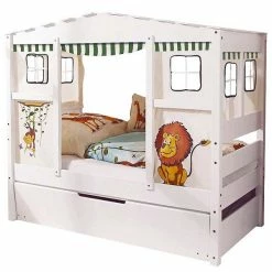 Ticaa Hausbett MINI Safari Kiefer Inkl Schubkästen Weiß Massivholz – Dessin: Safari – 80 X 160 Cm