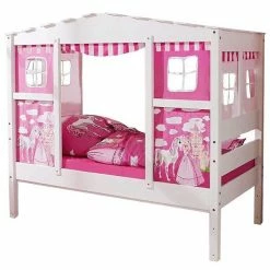 Ticaa Hausbett MINI Horse Rosa Kiefer Weiß Massivholz – Dessin: Horse Rosa – 80 X 160 Cm