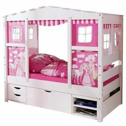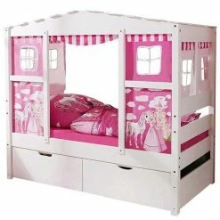 Ticaa Hausbett MINI Horse Rosa Kiefer Schubkästen Weiß Massivholz – Dessin: Horse Rosa – 80 X 160 Cm
