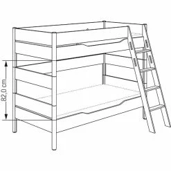 Paidi Tiago Etagenbett 160 Cm Kreideweiß Schräge Leiter 90×200 Cm