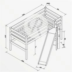 Relita KIM Halbhochbett Buche Massiv Natur Mit Rutsche Und Turmhalterung – Frachtfrei