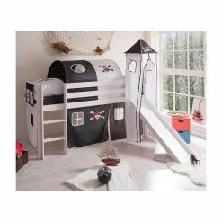 Ticaa Kasper Rutschbett Mit Turm Kiefer Weiß Massivholz – Vorhang-Dessin Wählbar