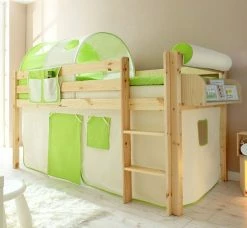 Ticaa Kasper Rutschbett Mit Turm Kiefer Natur Massivholz – Vorhang-Dessin Wählbar