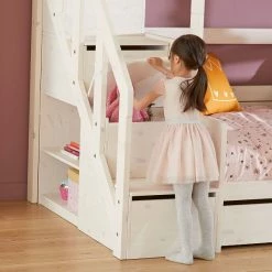 LIFETIME Hochbett 177 Cm Kiefer Whitewash 4640-01W Mit Rollboden