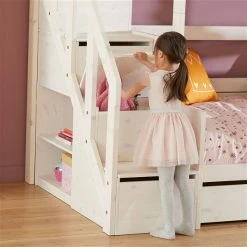 LIFETIME Halbhohes Bett Hangout Mit Treppe Whitewash – Inkl. Rollrost