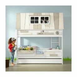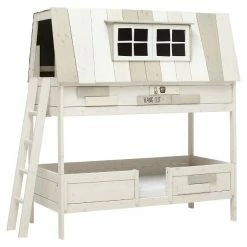 LIFETIME Mittelhohes Bett 152 Cm Kiefer Whitewash 4619-01W Mit Rollboden