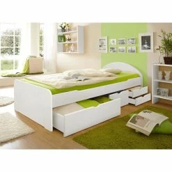 Ticaa Einzelbett Leni Weiß Mit Zusatzbett Massivholz – 90×200 Cm