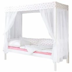 Ticaa Himmelbett Stern Weiß-Rosa Kiefer Weiß Massivholz – 90 X 200 Cm, Inkl. Tüll-Textilien