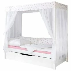 Ticaa Himmelbett Stern Weiß-Rosa Kiefer Weiß Inkl. Bettkasten & Tüll-Textilien – 90 X 200 Cm