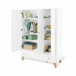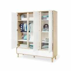 Pinolino Pan Kleiderschrank Groß 3T, 2S MDF Weiß / Eiche Massiv – Zum Toppreis