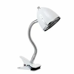 LIFETIME Klemmleuchte Weiß/Chrome Flexibler Hals – Max. 40 W