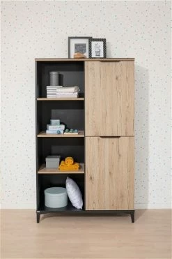 Paidi Tomke Regal 8 Fächer – 2 Türen Rechts Naturschwarz/Eiche-Bordeaux-Nachbildung