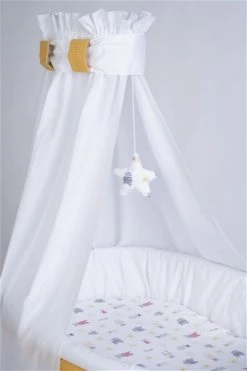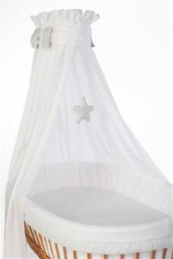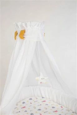Mionido Stubenwagen Maxi Weiß Pyjamabär Gelb Mit Garnierung, Matratze Und Matratzenbezug