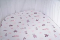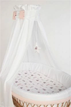 Mionido Stubenwagen Maxi Natur Pyjamabär Rosa Mit Garnierung, Matratze Und Matratzenbezug