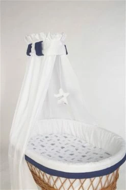 Mionido Stubenwagen Maxi Weiß Pyjamabär Blau Inkl. Garnierung, Matratze Und Matratzenbezug