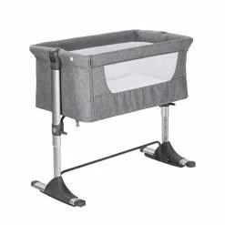 Schardt Joy Wiege/Beistellbett Aluminium/Leinen Hellgrau