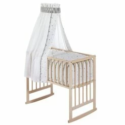 Schardt Multifunktionswiege 5 In 1 Buche Massiv Natur Mit Textiler Ausstattung Sternchen Grau