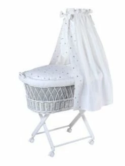Schardt Babsi Stubenwagen Buche Weiß Mit Textiler Ausstattung Sternchen Grau