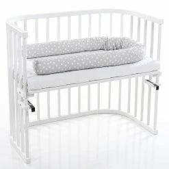 Babybay Nestchenschlange Piqué Für Kinderbetten Weiß, Mit Punkten Perlgrau