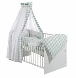 Schardt Vichy Mint Bettset 4- Teilig Mit Bettwäsche, Himmel Und Nestchen