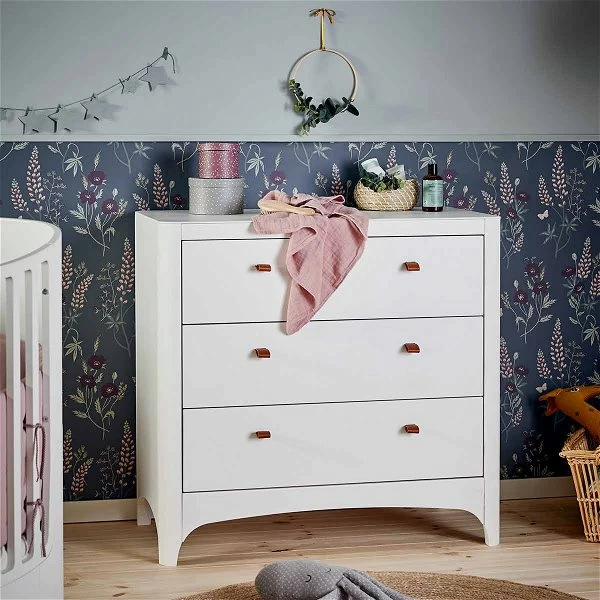 Die Leander Kommode Classic verfügt über drei geräumige Schubladen die ausreichend Platz zum Verstauen von Pullover, Hosen, Spielzeug oder Büchern bietet. Dank der weichen, runden Form der Leander Kommode gibt es keine scharfen Kanten an denen sich Ihr Kind verletzten kann. Alle Schubladen sind mit einem Softeinzug versehen.
